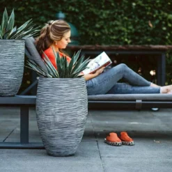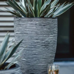 Capi Bloempot Hoog Nature Elegant Deluxe Rib NL – D56 X H84cm – Donkergrijs