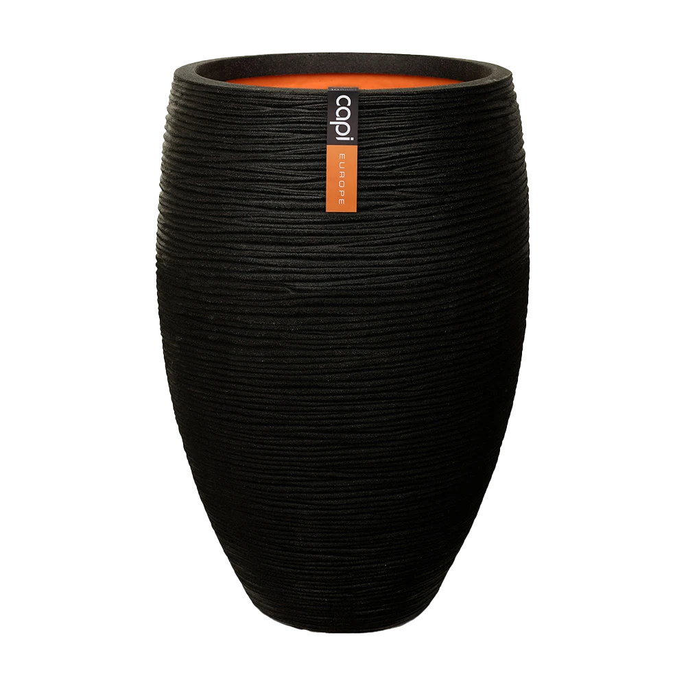 Capi Bloempot Hoog Nature Elegant Deluxe Rib NL – D38 X H58cm – Zwart