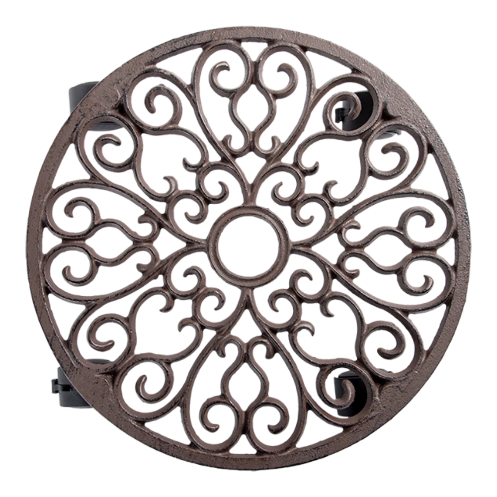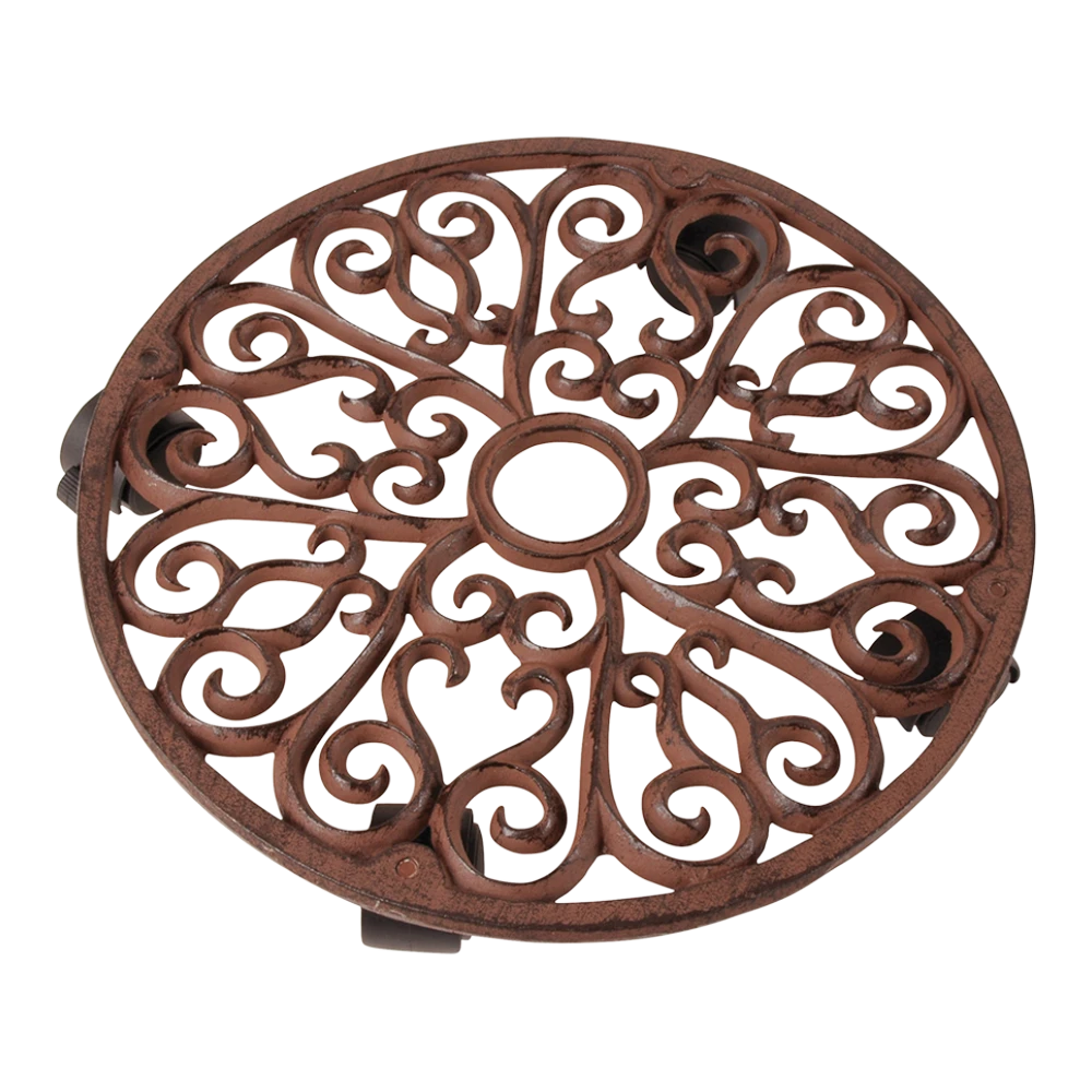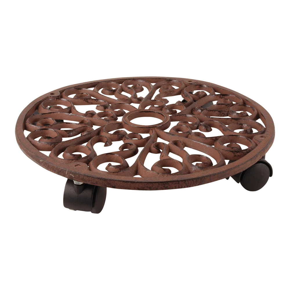 Ronde plantentrolley van gietijzer voorzien van zwenkwielen maat L